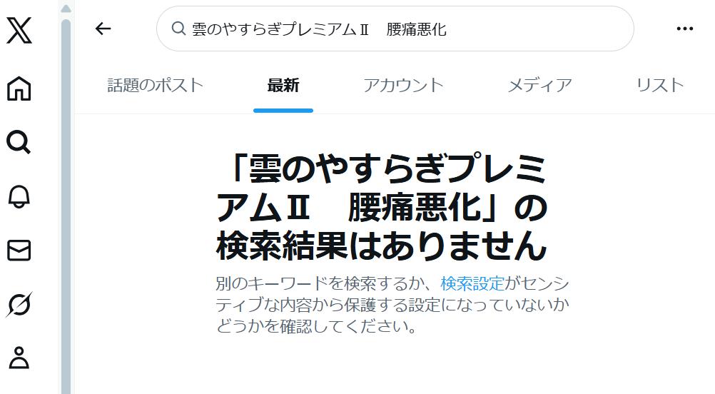 「雲のやすらぎプレミアムⅡ 腰痛悪化」で検索した結果が↓