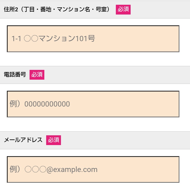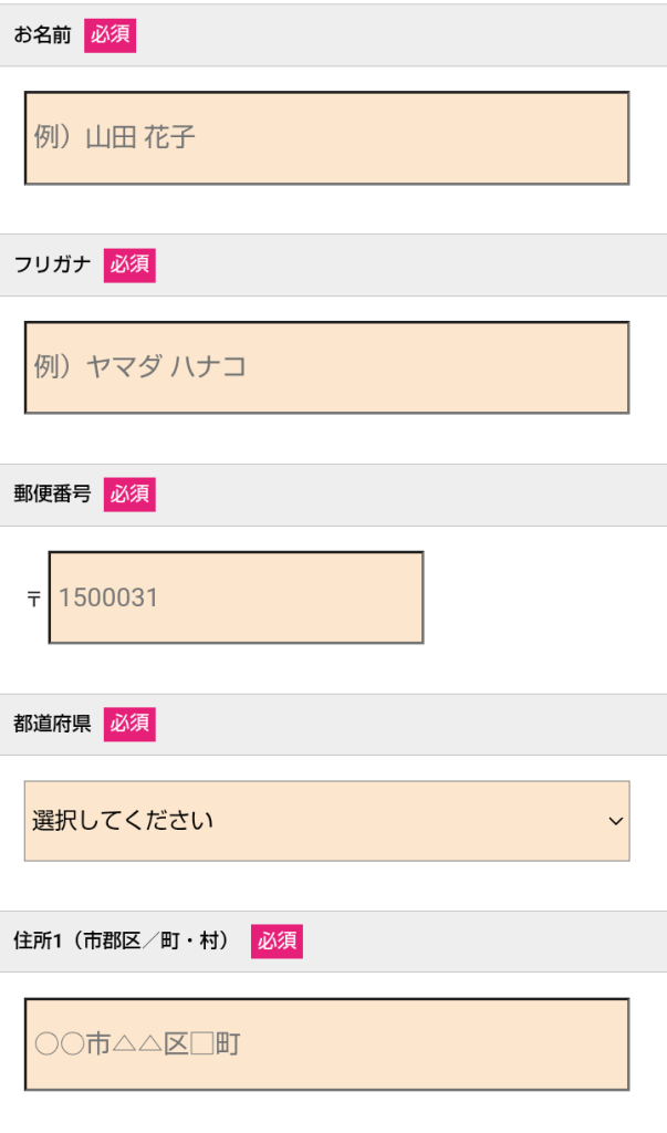 モットンを受け取るために必要なお名前、郵便番号、住所、電話番号、メールアドレスを入力します。