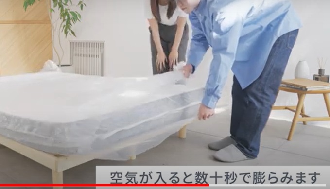 これを見るとネルマットレスがあっという間に膨らむ様子が一目でわかります。