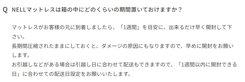 3.ネルマットレスは1週間以内に箱から取り出す